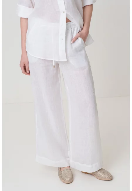 Характеристики Цвят: персийско зелено Стил: ежедневен Материал: полиестер - памук Принт: без принт Кройка: широк крачол Дължина: дълъг Талия: висока Детайли: еластична талия с връзка Джобове: 2 странични Закопчаване: връв Състав Външна част: 80% памук - 20% полиестер