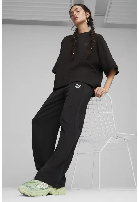 Характеристики Цвят: черен Стил: ежедневен Материал: синтетичен - памук Принт: лого Кройка: конусовидна Дължина: дълъг Талия: висока Джобове: странични Закопчаване: без закопчаване Състав Външна част: 79% памук - 17% полиестер - 4% еластан Информация за модел Моделът е ...