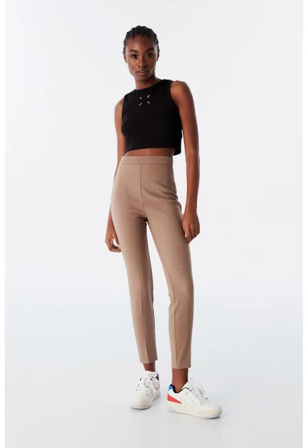 Характеристики Цвят: черен Стил: ежедневен Материал: полиестер - памук Принт: без принт Кройка: широк крачол Дължина: дълъг Талия: висока Детайли: колан Джобове: 2 Закопчаване: без закопчаване Състав Външна част: 80% памук - 20% полиестер Информация за модел Моделът е ...