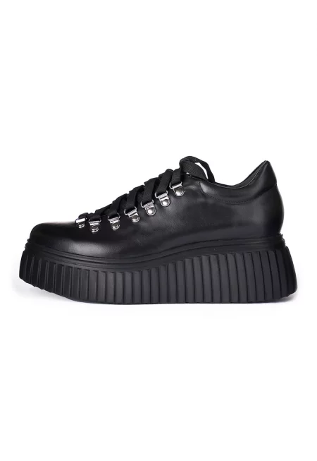 Характеристики Тип продукт: кецове Цвят: черен - сребрист Принт: лого Стил: ежедневен Материал: екологична кожа Закопчаване: връзки Тип на подметката: плоска Състав Горна част: други материали Материал интериор: текстил Материал подметка: други материали