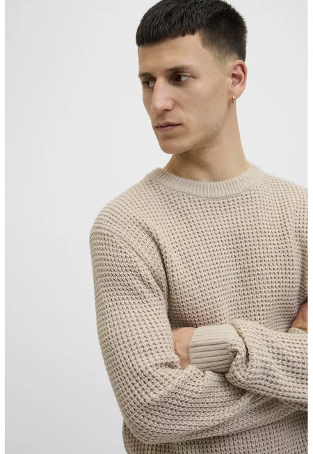 Характеристики Цвят: светло бежово Принт: без принт Материал: синтетичен - памук Стил: ежедневен Кройка: стандартна Закопчаване: без закопчаване Модел: обло Дължина ръкав: дълъг ръкав Детайли: рипсени краища Състав Външна част: външна част: 70% памук - 30% полиестер