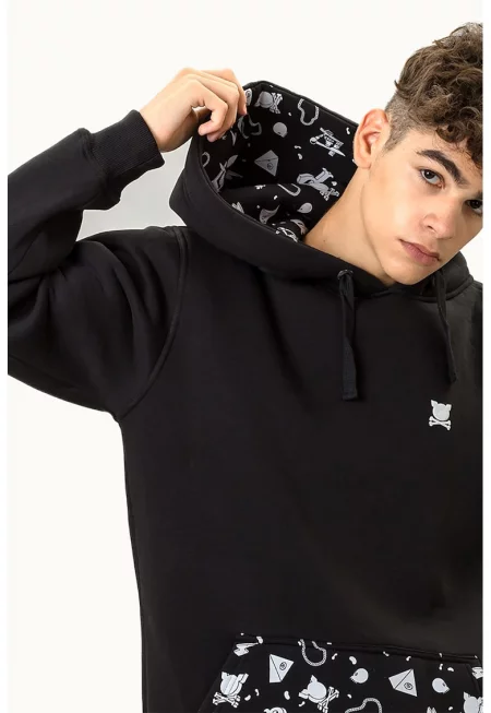 Унисекс худи с джоб тип кенгуру - Черен/Сив