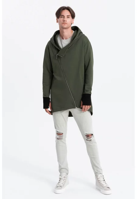 Худи с цип и асиметричен подгъв - Каки