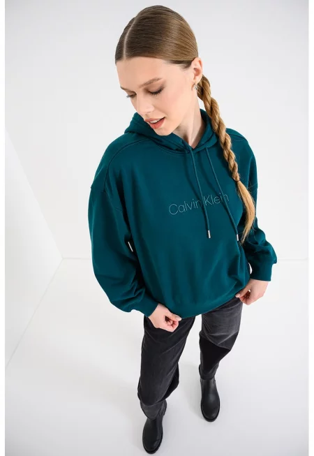 Характеристики Тип продукт: суитшър Цвят: тъмнозелен Принт: без принт Материал: полиестер - памук Кройка: свободна Закопчаване: без закопчаване Джобове: кенгуру Ръкави: свободнопадащи Дължина ръкав: дълъг ръкав Състав Външна част: 65% памук - 35% полиестер