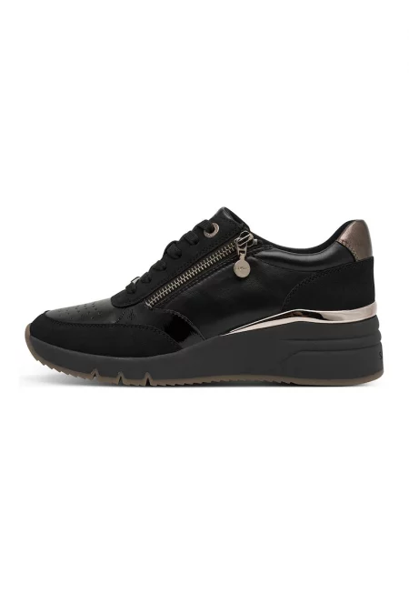 Характеристики Цвят: бял - черен Връх: кръгъл Тип на подметката: равна платформа Детайли: масивен ефект - гумиран връх Закопчаване: връзки Състав Горна част: текстил Материал интериор: текстил Материал подметка: други материали Размери Височина на подметката: 3.5 cm