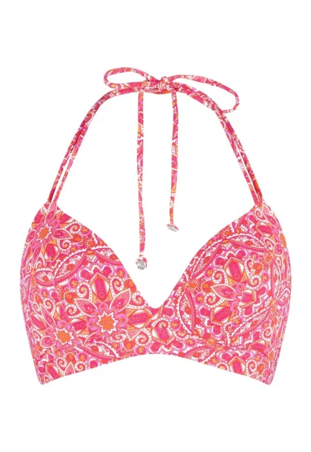 Основни детайли Тип продукт: сутиен Цвят: светло оранжево - крем Принт: абстрактен Форма чашка: триъгълна Материал: еластан - полиамид Дизайн Тип сутиен: подплатен Банели: без банел Състав на материала Външна част: 80% полиамид - 20% еластан Информация за модел Моделът е ...