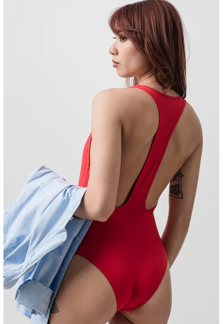 Основни детайли Тип продукт: цял бански Цвят: камел Материал: синтетичен Принт: без принт Презрамки: 2 тънки - регулируеми Детайли: отвори отпред Закопчаване: без закопчаване Дизайн Тип сутиен: полуподплатен Банели: без банел Стил деколте: овално Тип долнище: бразилско ...