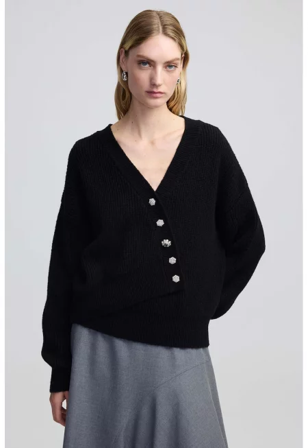 Характеристики Цвят: бял Принт: без принт Материал: вълна Модел: v-образно деколте Дължина ръкав: дълъг ръкав Тип ръкав: паднали Състав Външна част: 100% вълна