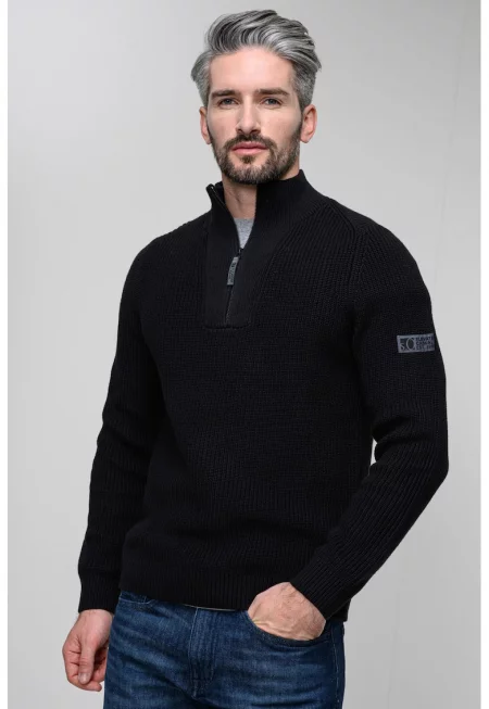 Характеристики Цвят: тъмносин Принт: без принт Материал: вълна Кройка: стандартна Закопчаване: без закопчаване Яка: поло Дължина ръкав: дълъг ръкав Детайли: фино плетена материя Състав Външна част: 100% вълна Информация за модел Моделът е облечен с размер M. Размер на ...