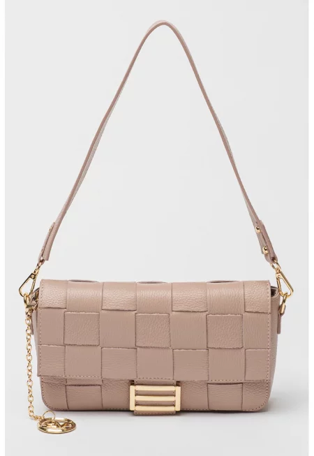 Характеристики Цвят: бежов Материал: велур Модел: за рамо Стил: ежедневен Принт: без принт Презрамки: 2 фиксирани Джобове: вътрешни с цип Отделения: 1 Цвят на метала: сребрист Закопчаване: магнитни капси Състав Външна част: 100% велур Подплата: 100% памук Размери Размери (см): ...