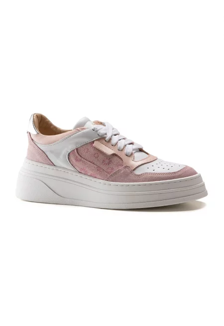 Характеристики Цвят: зелен - розово Връх: кръгъл Тип на подметката: скосена платформа Материал: велур - синтетичен Стил: ежедневен Закопчаване: връзки Състав Горна част: велур - други материали Материал интериор: синтетика и текстил" Материал подметка: други материали"