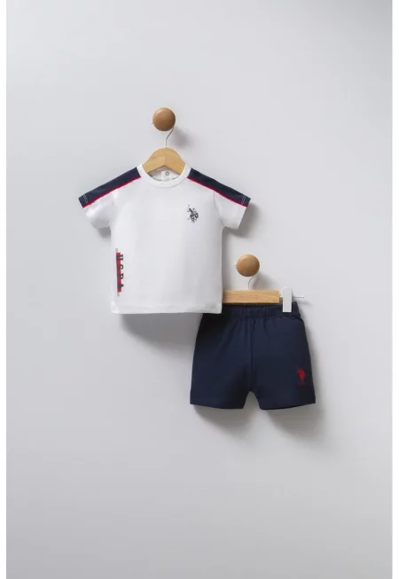 Памучна тениска с яка и шорти - Мръснобял/Тъмносин