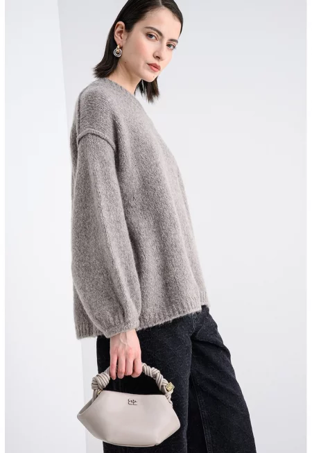 Пуловер Sagarro с паднали ръкави - Светло кафяво